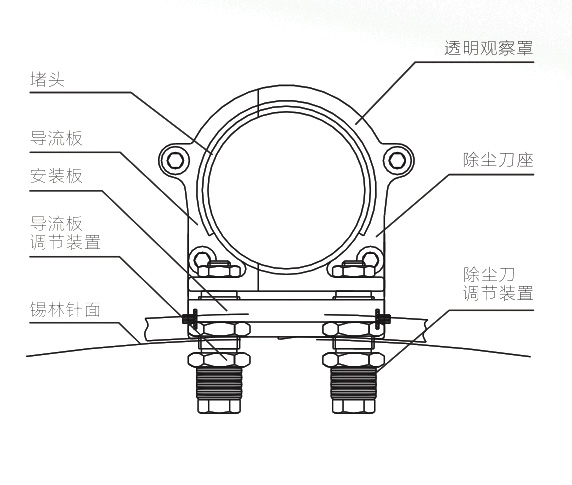 3、導(dǎo)流板和除塵刀各自獨立調(diào)節(jié)而互不影響。